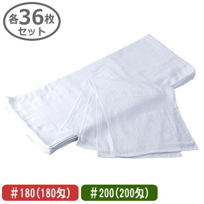 他の業務用タオルはこちら! 【商品仕様】 ●サイズ/#180:約外寸縦820×横350mm、#200:約外寸縦800×横340mm ●材質/綿100% ●規格/#180(180匁)・#200(200匁) ●中国製 ※メーカーに在庫がある場合は2-4営業日以内に発送させて いただきますが、稀に在庫がない場合もございますので、 お急ぎの場合はお問い合わせください。