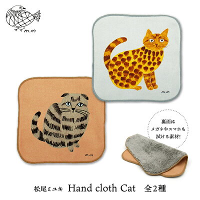 松尾ミユキ 猫 ハンカチ【m.m Hand cloth Cat/ハンドクロスキャット】全2種【ネコポス対象】